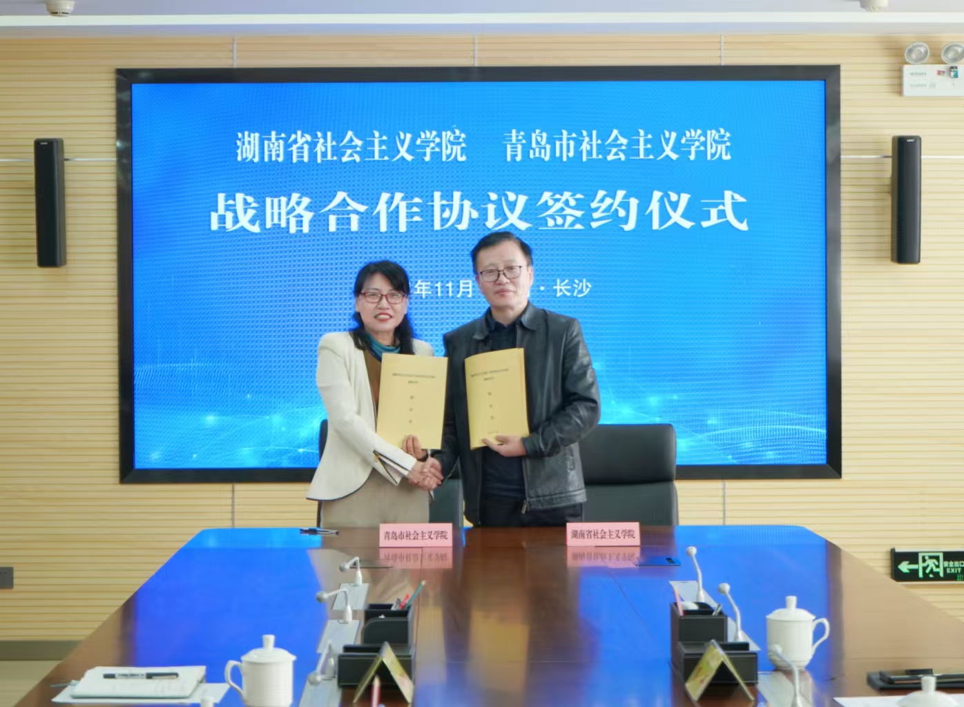 为全面贯彻落实中央社会主义学院关于“构建全国社院创新发展联合体”工作要求,健全完善联合办学体制机制,11月26日上午,半岛电竞与青岛市社会主义学院举行战略合作协议签约仪式。半岛电竞党组成员、副院长洪真健,青岛市社会主义学院党组成员、副院长荆涛出席并代表双方签约。