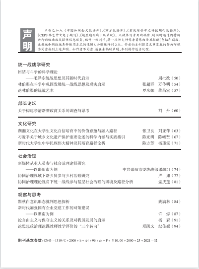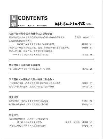 湖南社院学报2021年第1期封面及目录