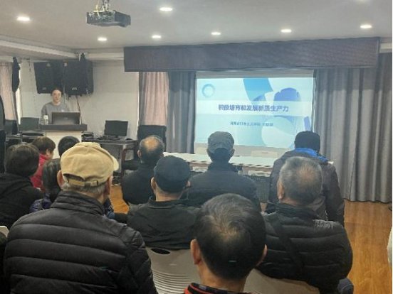 文化交流部刘赵靓老师以《积极培育和发展新质生产力》为主题,围绕新质生产力的内涵、特征及其对社会发展的重要性等方面带来了深入浅出的讲解,内容丰富,条理清晰,与会党员听得聚精会神、频频点头。