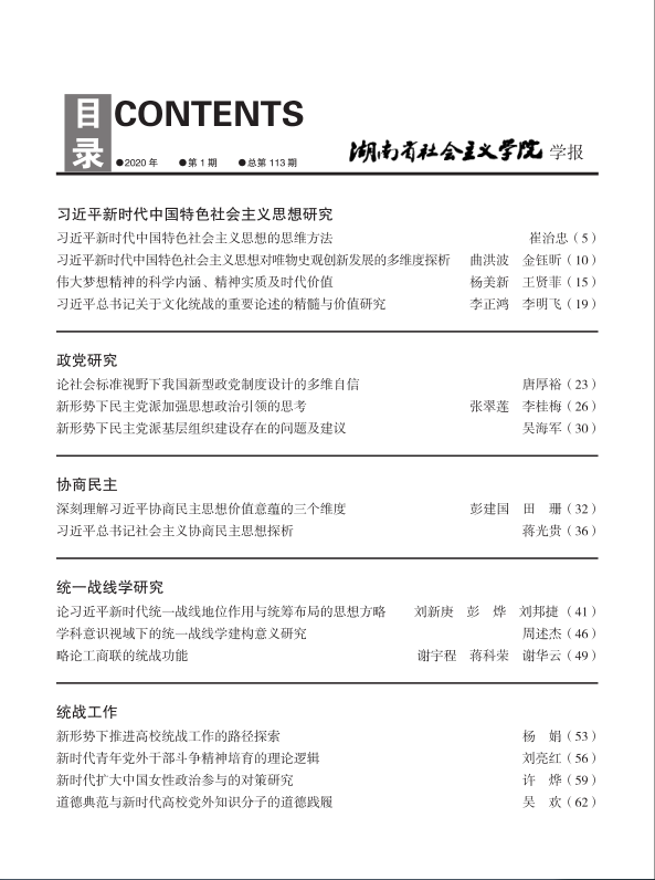 湖南社院学报2020年第1期封面及目录